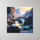 Vackert Winter Waterfall Vatten under Bridge 2 Canvastryck