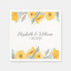 Fira bröllop med dessa vackra pappra blöjor av anpassningsbar som har en handmålad vattenfärg i gula blommor och löv. Lägg till bridens namn och bröllop-datum för att anpassa sig. Finns även i lunchup och middagsservetter. Perfekt för romantiska trädgårdsbröllop, chicens helgedom och mottagningar och möhippor.