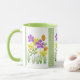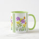 Vackra akvarellfärgade vildblommor med grön gingha mugg