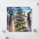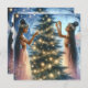 Personlig julkort. Illustration av afroamerikanska älvor eller änglar som dekorerar en julgran i en vintersaga-miljö. Vacker eterisk sagobakgrund.
