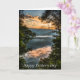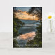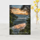 Ett vackert bergslandskap med en uppgående sol, moln och träd skapar ett vackert fadersdags kort med en kristen hälsning inuti.