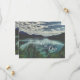 Det här Save the Date bröllop-meddelandet innehåller ett vackert foto av ett sjö omgivet av berg. Himlar är fyllt av fantastiska moln som reflekteras i vatten. *