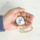 Ett fickur med en vacker bild av blåklockor. Bakgrunden, bilden och texten kan anpassas. Originalkonst av W.B.
