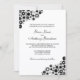 © 2010 Socialite Designs. En vacker hörnblommig designinbjudan i svart med vit bakgrund. Typsnitt, text och papperstyp kan ändras. Behöver du HJÄLP med anpassning? Tveka inte att kontakta mig med dina krav.