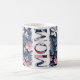 Börja din dag med en anpassningsbar kaffe kopp mugg. Vacker "Mamma"-Blommönster med vita, blå och rosa blommor - även underbart för te, hett choklad eller vilken hett som helst. Underbar presentidé för mamma.