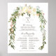 Elegant och stilren bröllopsceremoni program posterskylt med akvarellblommor i kräm och rosafärgade nyanser och frodig grön lövverk. Koordinerar med vår "Vackra blommor" bröllopsinbjudan kollektion.