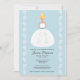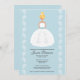 Anpassa och anpassa denna vackra bröllopsfest inbjudan med en ljusblå texturerad bakgrund och en vacker, blond brud i en strapless bröllopsklänning med ett blått band och vacker blomster mönster på hennes kjol. Hon har en blomma i håret och kompletterar med ett vackert par tårformade hänge örhängen. Klicka på följande länk för att se alla våra Chrissy H. Illustration © Chrissy H. Studios, LLC