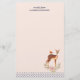 Stationär papper med en vacker brun doe med vita prickar på hennes päls. En söt fågel sitta på hjorten. En elegant blomma arrangemang som består av ro och ljust grönt löv under hennes fötter. En blå polarpunkt gräns med persikobakgrunden för färgaden. Älskling och förtjusande design. Anpassa med namn.