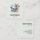 Affärskort med en trio fjärilar som flödar bland vissa söt blommor. Systemet för blå rosa och grönt färg.
