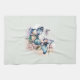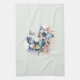 Kökshandduk med en trio fjärilar som flödar bland vissa söt blommor. Systemet för blå rosa och grönt färg.