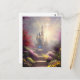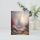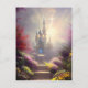 Vacker vykort med en förtrollande fantasiscen av solbelyst slott och vackra trädgårdstrappor. Digital konst skapad med AI-renderingsprogramvara.