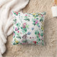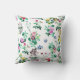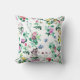 Vacker prydnadskudde prydd med fjärilar och blommor, rosa, lila, grön och gul.