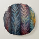 Vackra, flerfärgade, kristallfjädrade rund kudde