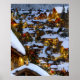 Vackra gamla bergsbyn vid jul, snö, ljus.
