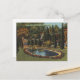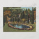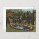 Den vackra trädgården i Savannah är en vintage illustrerad av The Tichnor Brothers. Garden innehåller en reflekterande damm och gult och röda blommor med grönt träd och blå himmel i bakgrunden.