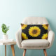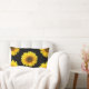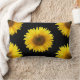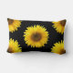 Vackra gula solrosor på svart ländryggskudde. En fin present till alla!