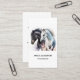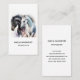Affärskort med ett par svarta och vita hästar som hänger ihop. Illustrerad med vattenfärger.