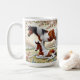Vackra hästar och föl i en blommande trädgård kaffemugg