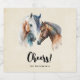 Skål! Märk vin flaska med vackra vattenfärger teckning. Med ett par hästar, brunt och vitt. Huvud och nacke synliga med droppfärg längs basen av deras nacke. Sydvästra vibe.