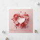 En vacker hjärtformad komposition designad av röda, rosa och vita blommor gjorda som 3D-papper, i olika storlekar och stilar, inklusive rosor och körsbärsblommor. Små röda hjärtan är utspridda runt blomsterarrangemanget och förstärker den romantiska och känsliga estetiken. Den övergripande färgpaletten är mjuk och harmonisk, med nyanser av rosa, rött och kräm, vilket ger bilden ett charmerande och elegant utseende, perfekt för romantiska teman som Alla hjärtans dag, bröllop eller kärleksrelaterade designs.