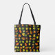 Vacker höstlöv på svart toteväska. Höstlöv med gyllene, gröna orange och gula nyanser.