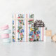 Vackra möhippans rullomslag pappra med jordgubbsbär och blommigt blå och vit rand.