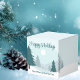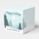 En vacker vintervy med tealgröna tallar och snötäckt mark på en liten personlig julklappsförpackning. Anpassa denna företagsnamn Happy Holidays-choklad för dina företags- eller privatkunder.