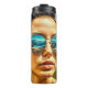 Coola ai-konst som skildrar ett vackert dam som bär solglasögon och som avspeglar ett bergsområde.