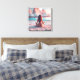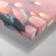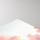 En vacker kvinna som bedrar sig på en strand med vit sand och glansigt glas. Rosa och blåfluffa moln och blek blå vatten.