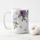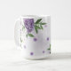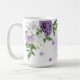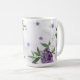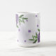 romantiska lila och vita blommor med några gröna blad botanisk kaffekopp.