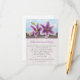 Lila lilja-förvaringskort (medföljande kort) med en rustic chic-tema, exklusivt designade av Artistically Invited, med två lila liljor längs överkanten, på en brun träyta, över en blå bakgrund. Dina personliga förvaringsdetaljer för dina gäster är specialtryckta i brunt och lila över en ljusare trästruktur bakgrund. Dessa lila lilja-förvaringskort är perfekta för dina blomsterinspirerade bröllopsfiranden. Matchande inbjudningar, adressetiketter, tackkort och andra artiklar finns tillgängliga. De är tillverkade för att matcha de vackra lila lilja-bröllopsinbjudningarna.