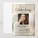En vacker livsinbjudan med ett foto av din älskade och anpassad text. Bakgrunden har vita ljus - lugn och fridfull. (Du kan enkelt byta bakgrundsfotot till ditt eget.) Klassisk men unik - den här mallen är så enkel att anpassa och kommer också att bli en underbar minnessak.