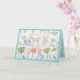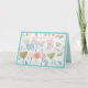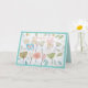 Färgkort för Grattis på födelsedagen-blomman. Fantasyblomma och fjärilskonstruktion med delikata moderna löv och blomningar. Coral, blå, gröntens skönhet. Accent aqua insida. Anpassa meddelandet i kortet med en mall som är enkel att använda.