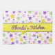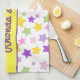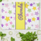En vacker och färglös stjärna mönster. Du kommer att kärlek rosa, lila, grönt och gult punkter på vit bakgrund. Med en rektangel med gult i lilan i mitten anpassar du ditt namn i lilans kursivt inre. Stars Art: AMBillustrations http://www.etsy.com/shop/AMBillustrations/