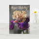 Blommigtens hälsningskort för födelsedag som innehåller fotobilden av en vacker persiko- och lila, bicolor Iris-blomma. Välj från projektionsyta eller glansigt stil-kort.