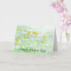 Mors dag-kort med ett fräscht och sommarbetonat fotografi som visar en samling vilda prästkragar med stora gula centra som växer på ett grönt fält.