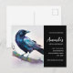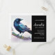 Brevkort från födelsedagsinbjudan med en underbar vattenfärg teckning i en kråka. Mörk blått och dynamiskt lila färg betonar denna fågels skönhet.
