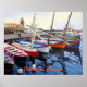 Vackra röda Orangen Blue Grönt Boats i Collioure Poster