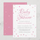 Med rosa text och vackra rosa kärlekshjärtan utspridda runtom dina personliga detaljer i elegant text på denna snygga baby shower, sprinkle eller par shower inbjudan. Designad av Thisisnotme©