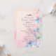 En elegant och feminin bröllopsdusch-inbjudan. Bakgrunden är en mjuk och delikat akvarellillustration av ett blomsterarrangemang med vackra rosa och blå vilda blommor med en persikofärgad pergamentliknande bakgrund som ger designen en romantisk prägel. Blå blommor dekorerar kanten av designen medan de rosa blommorna tonar ut i bakgrunden för en mjuk delikat effekt.