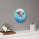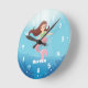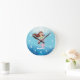 En klocka för att dekorera det lilla flickans sovrum med ett under havet fantasi tema! Den har en söt sjöjungfru flicka med rosa sjöstjärna tillbehör pinne för hennes hår, en pastellgrön topp och rosa sjöjungfru svans. Bakgrund av blå och hav bakgrund. Anpassa med barnets namn.