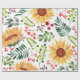 Hand målade vattenfärgade solrosor, bär och papper förpackning av grenar mönster.