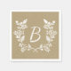 Rustiska pappra blöjor med vit blommigt andedräkt och anpassningsbar monogram på beige bakgrund med nöd.