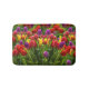 Detta vackra badmatt har en högupplöst bild av tulpaner i olika ljusa skuggor av rött, lila och gult. Tulips växte ursprungligen vilden i Centralasien och sågs som en symbol för det ottomanska riket, men på 1600-talet importerades de till Europa och blev snart mycket prisade som en värdefull vara. De blev associerade med Nederländerna, där många blommor odlades och såldes på marknaderna. Sedan dess har många vackra hybrider och sorter, i alla slags underbara färg, fötts upp.