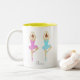 Vackra tvillingballetdansare iklädda ljust turkosblå och ljust rosa Mug. Namntexten kan anpassas.