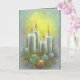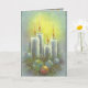 Vintage julkort med söt vita helgdag, prydnadsföremål och gräs cone center biet. Insidan är adorberad med guld glitter snöflingor.