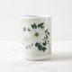 Vacker botanisk klassisk kaffekopp med romantiska vita blommor och gröna blad.