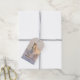 Märkre med julklapp med ett foto av en underbar vit häst. Körs genom ett snö täckt fält. Majestisk och vacker.