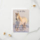 Spara datumkortet med ett foto av en underbar vit häst. Körs genom ett snö täckt fält. Majestisk och vacker.