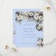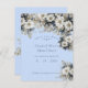 Bedårande botanisk trädgård, atriumbröllop spara datum-kort med vackra vita rosor, snygga vinor med ljusa och mörka blå blad.